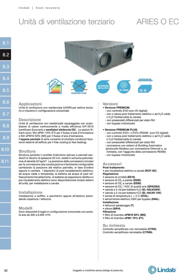 (certificato Eurovent) e ventilatori elettronici EC. Le sezioni fil-