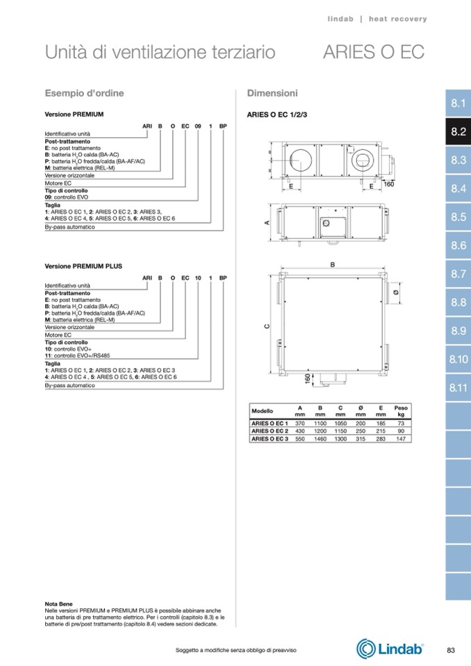 batterie di pre/post trattamento (capitolo 8.4) vedere sezioni dedicate.