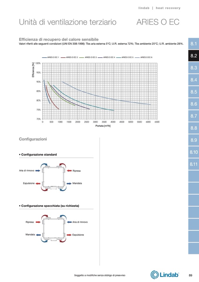 Valori riferiti alle seguenti condizioni (UNI EN 308:1998): Tbs aria esterna 5°C; U.R. esterna 72%; Tbs ambiente 25°C; U.R. ambiente 28%.