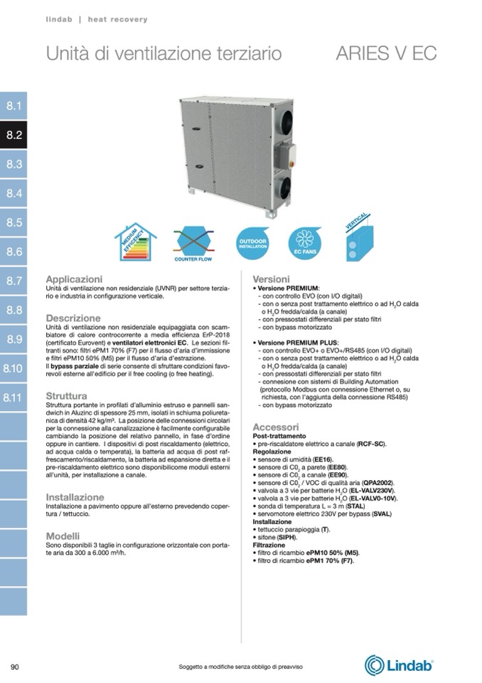 (certificato Eurovent) e ventilatori elettronici EC. Le sezioni fil-