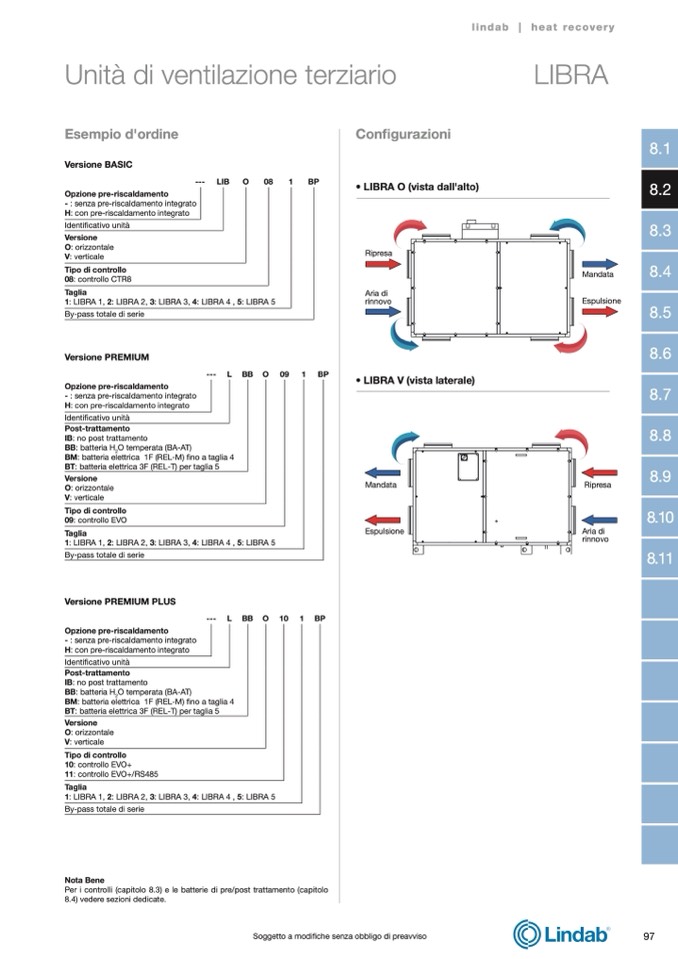 Per i controlli (capitolo 8.3) e le batterie di pre/post trattamento (capitolo