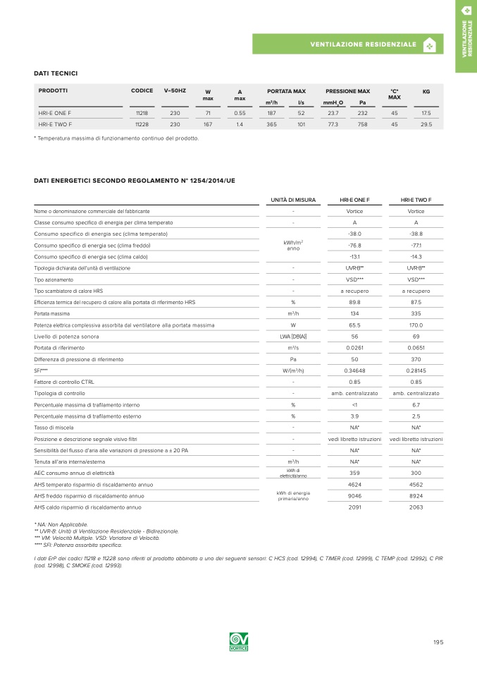 I dati ErP dei codici 11218 e 11228 sono riferiti al prodotto abbinato a uno dei seguenti sensori: C HCS (cod. 12994), C TIMER (cod. 12999), C TEMP (cod. 12992), C PIR