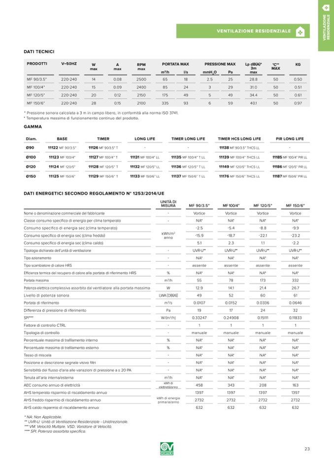 DATI ENERGETICI SECONDO REGOLAMENTO N° 1253/2014/UE