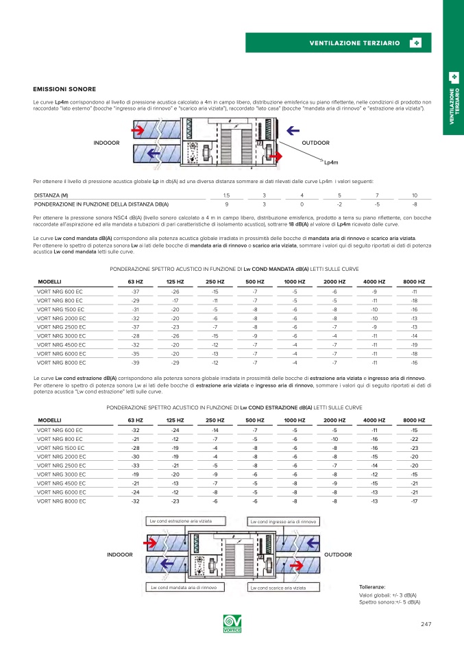Le curve Lw cond estrazione dB(A) corrispondono alla potenza sonora globale irradiata in prossimità delle bocche di estrazione aria viziata e ingresso aria di rinnovo.