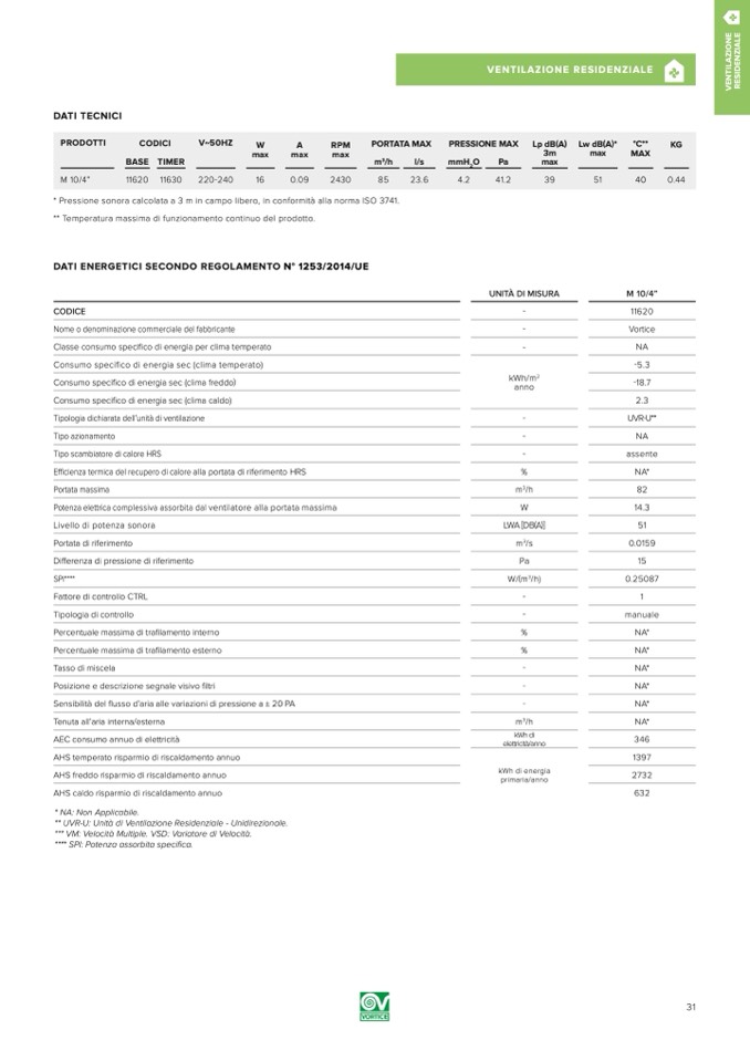 ** UVR-U: Unità di Ventilazione Residenziale - Unidirezionale.