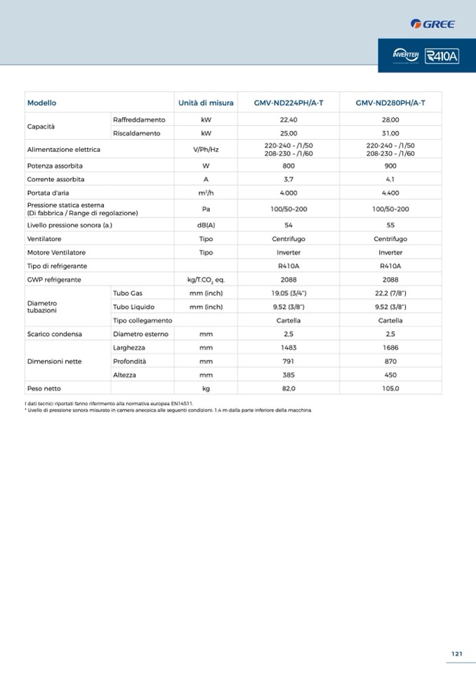 I dati tecnici riportati fanno riferimento alla normativa europea EN14511.
