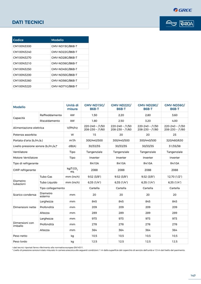 I dati tecnici riportati fanno riferimento alla normativa europea EN14511.