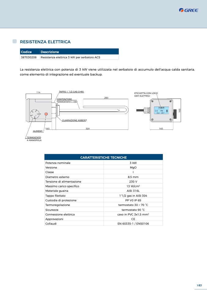 387030208 Resistenza elettrica 3 kW per serbatoio ACS
