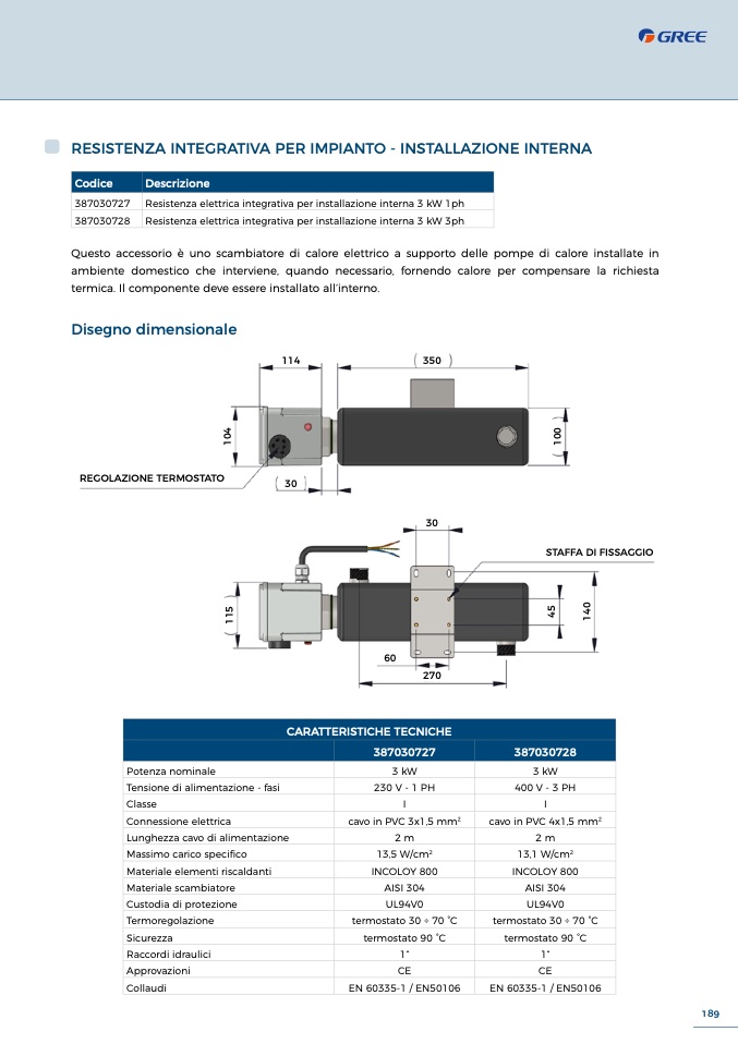 387030727 Resistenza elettrica integrativa per installazione interna 3 kW 1ph