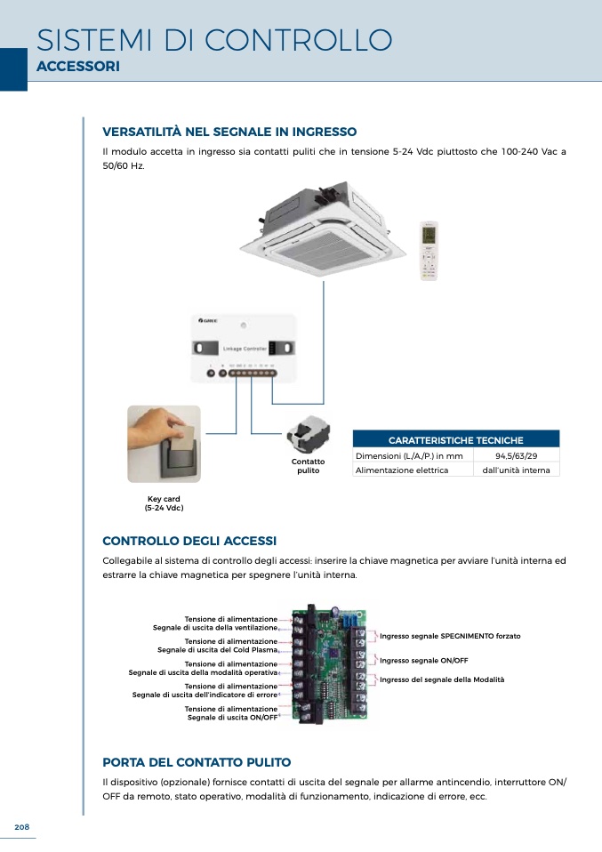 Collegabile al sistema di controllo degli accessi: inserire la chiave magnetica per avviare l’unità interna ed