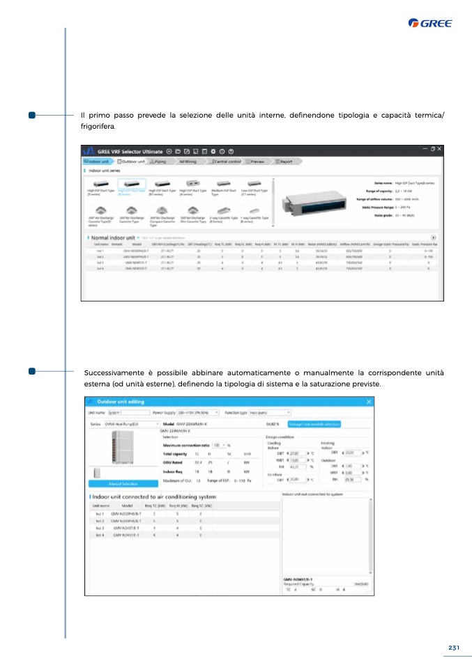 Il primo passo prevede la selezione delle unità interne, definendone tipologia e capacità termica/