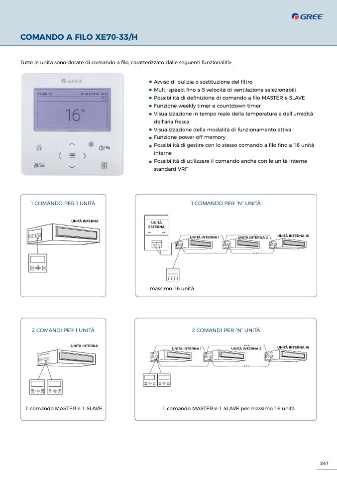 Possibilità di gestire con lo stesso comando a filo fino a 16 unità