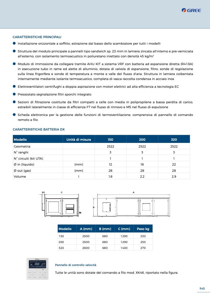 sulla linea frigorifera e sonde di temperatura a monte e valle del flusso d’aria. Struttura in lamiera coibentata