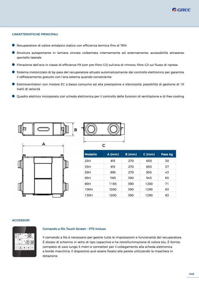 Il comando a filo è necessario per gestire tutte le impostazioni e funzionalità del recuperatore.