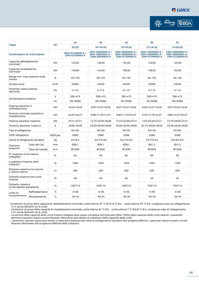 • I parametri riportati sopra sono testati in base alla lunghezza del tubo di collegamento standard. Nel progetto effettivo, i parametri devono essere corretti