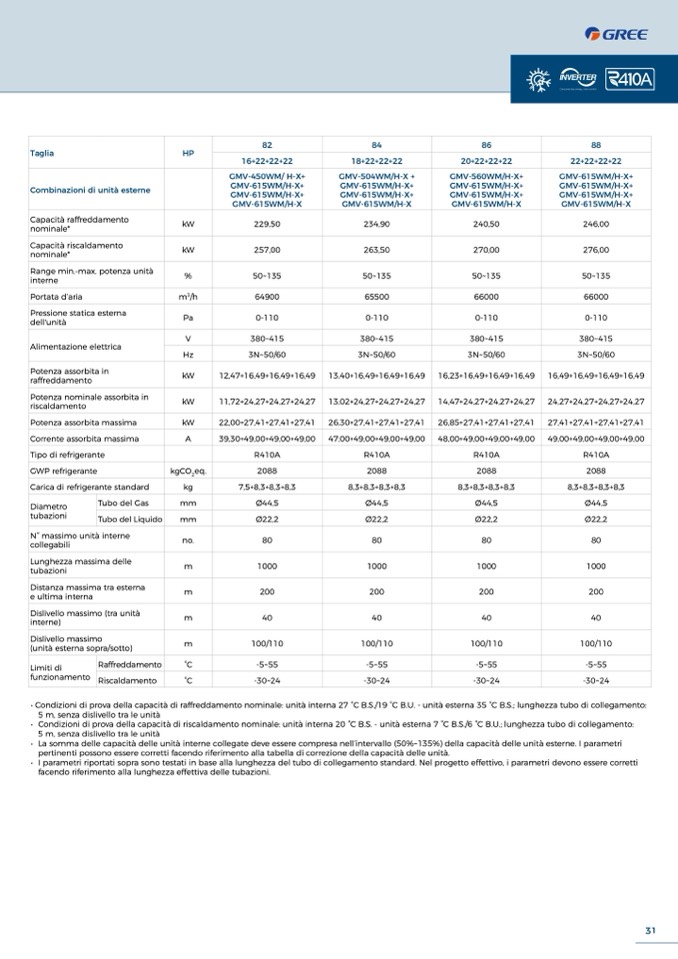 • I parametri riportati sopra sono testati in base alla lunghezza del tubo di collegamento standard. Nel progetto effettivo, i parametri devono essere corretti