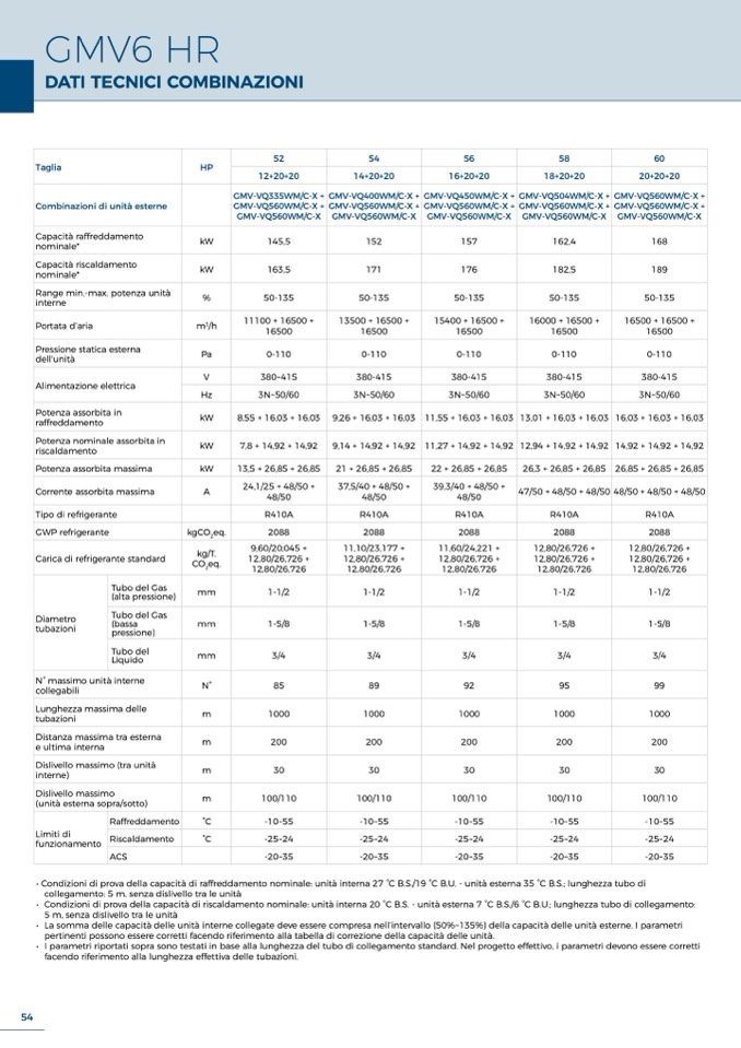 • La somma delle capacità delle unità interne collegate deve essere compresa nell’intervallo (50%~135%) della capacità delle unità esterne. I parametri