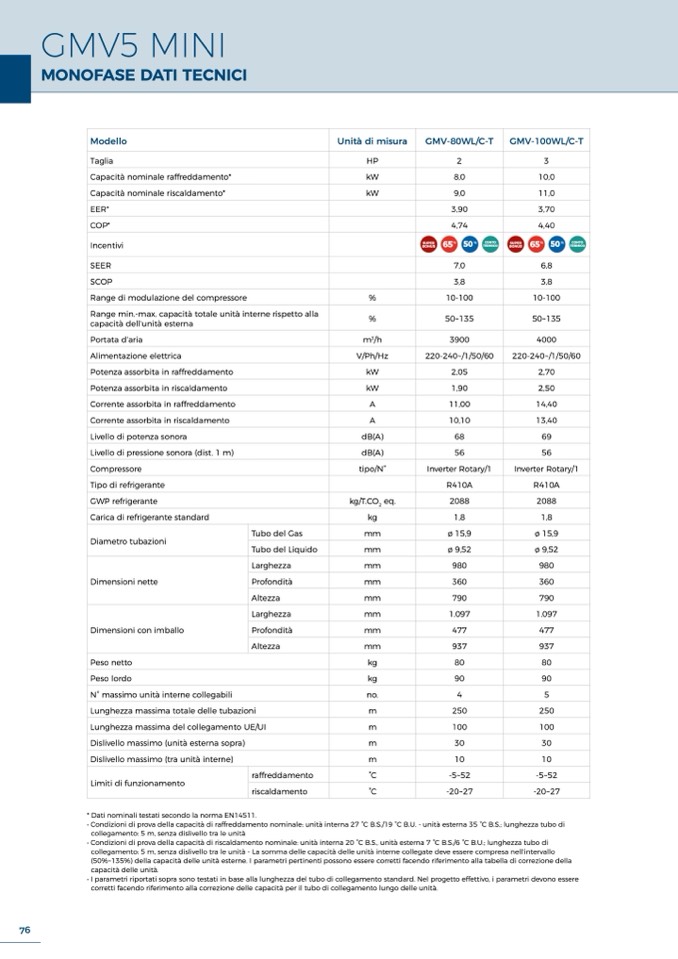 * Dati nominali testati secondo la norma EN14511.