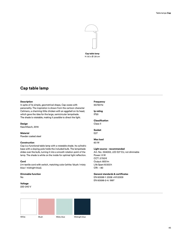 Cap is a functional table lamp with a rotatable shade. Its cylindric