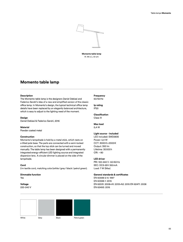 2 m textile cord, matching color (white / grey / black / petrol green).