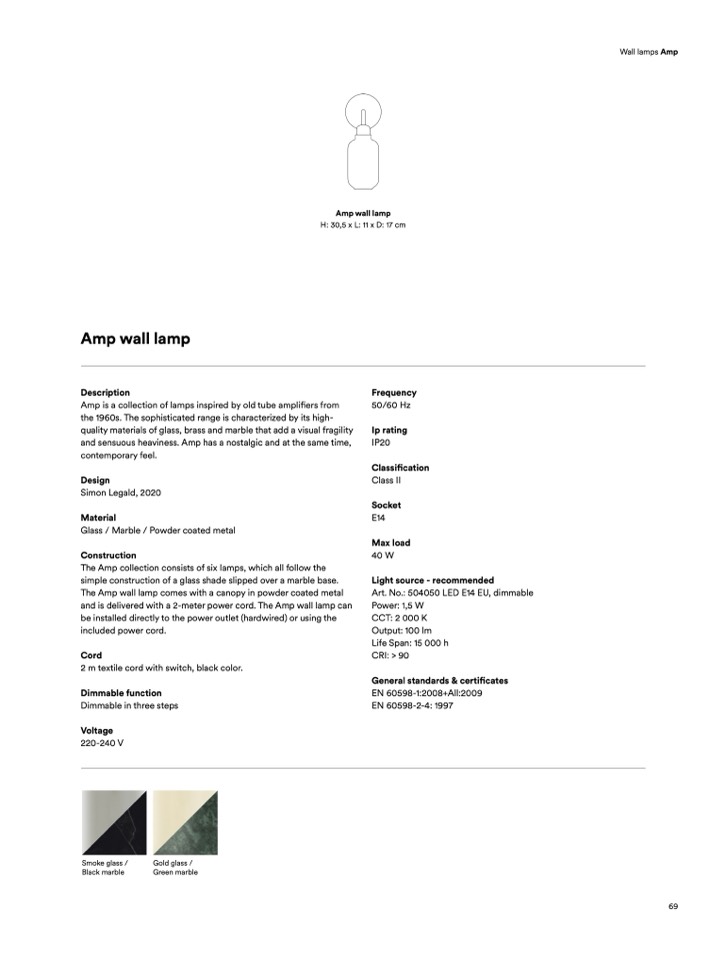 and is delivered with a 2-meter power cord. The Amp wall lamp can
