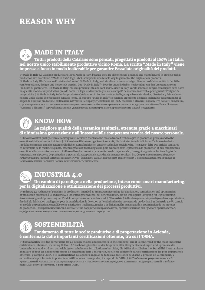 EN Made in Italy All Catalano products are 100% Made in Italy, because they are all conceived, designed and manufactured in our sole global