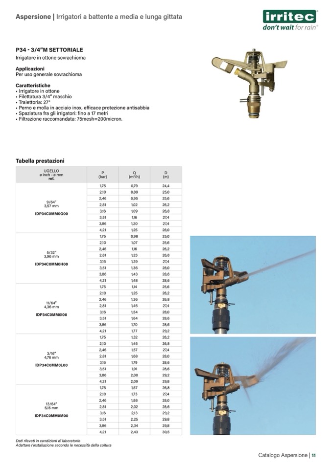 • Spaziatura fra gli irrigatori: fino a 17 metri