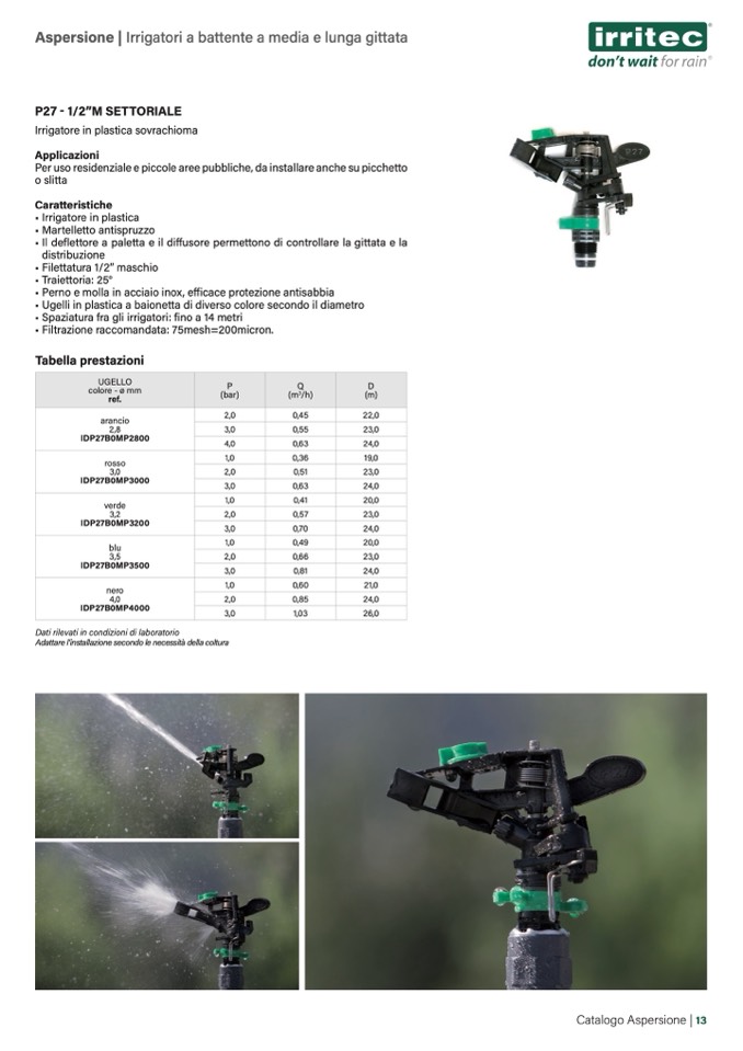 • Spaziatura fra gli irrigatori: fino a 14 metri