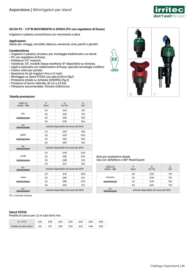 • Spaziatura tra gli irrigatori: fino a 12 metri.