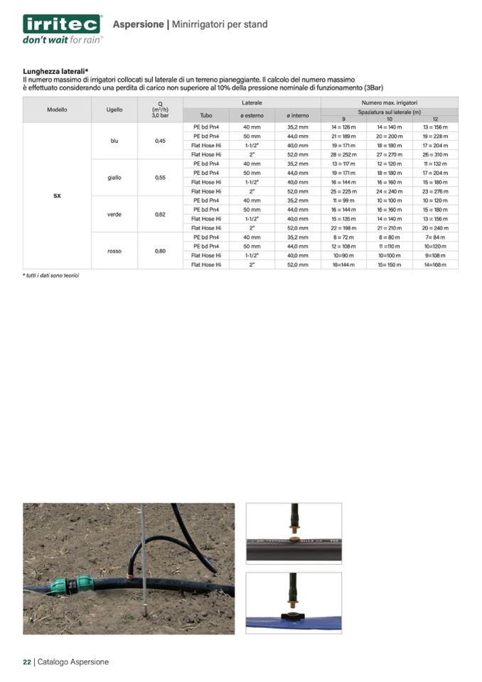 Il numero massimo di irrigatori collocati sul laterale di un terreno pianeggiante. Il calcolo del numero massimo