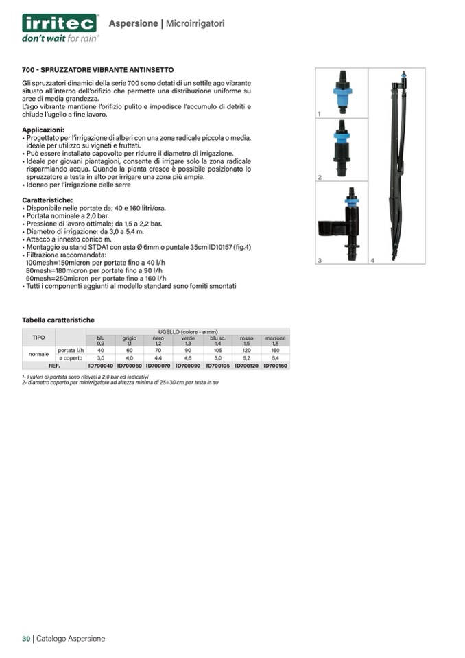 Gli spruzzatori dinamici della serie 700 sono dotati di un sottile ago vibrante