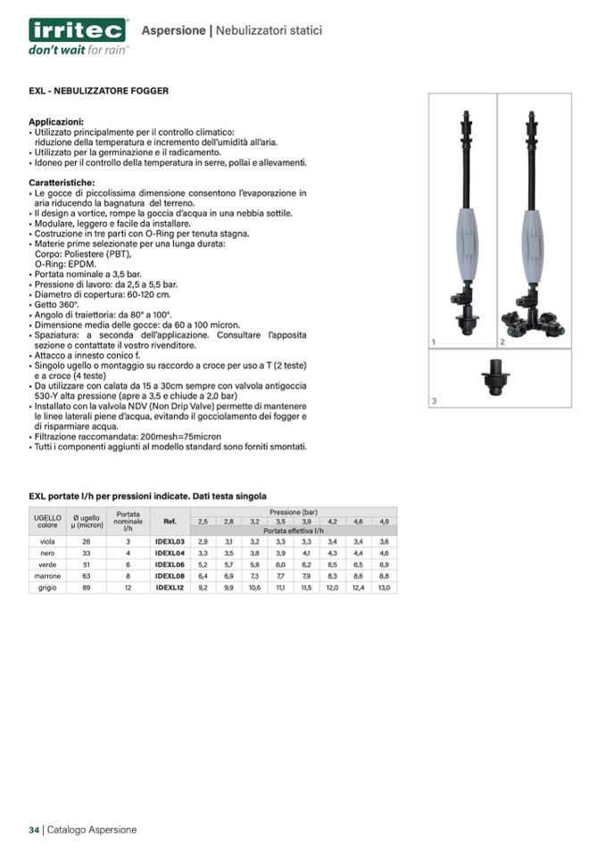 • Dimensione media delle gocce: da 60 a 100 micron.