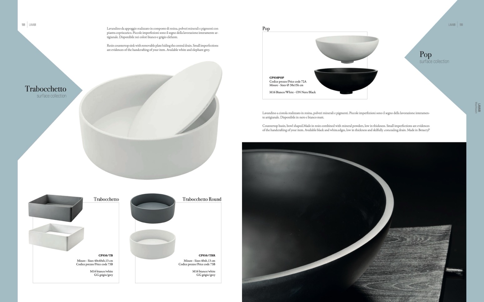 Countertop basin, bowl shaped.Made in resin combined with mineral powders, low in thickness. Small imperfections are evidences