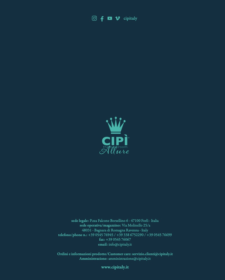 Ordini e informazioni prodotto/Customer care: servizio.clienti@cipitaly.it