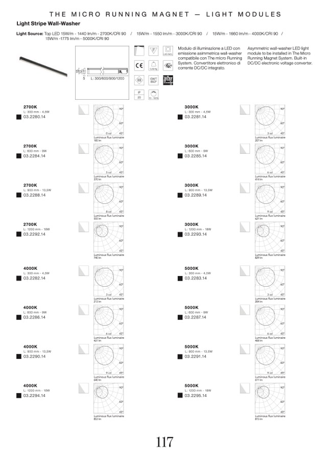 Light Source: Top LED 15W/m - 1440 lm/m - 2700K/CRI 90