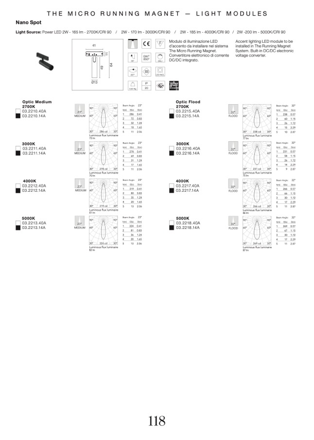 2W - 170 lm - 3000K/CRI 90 / 2W - 185 lm - 4000K/CRI 90