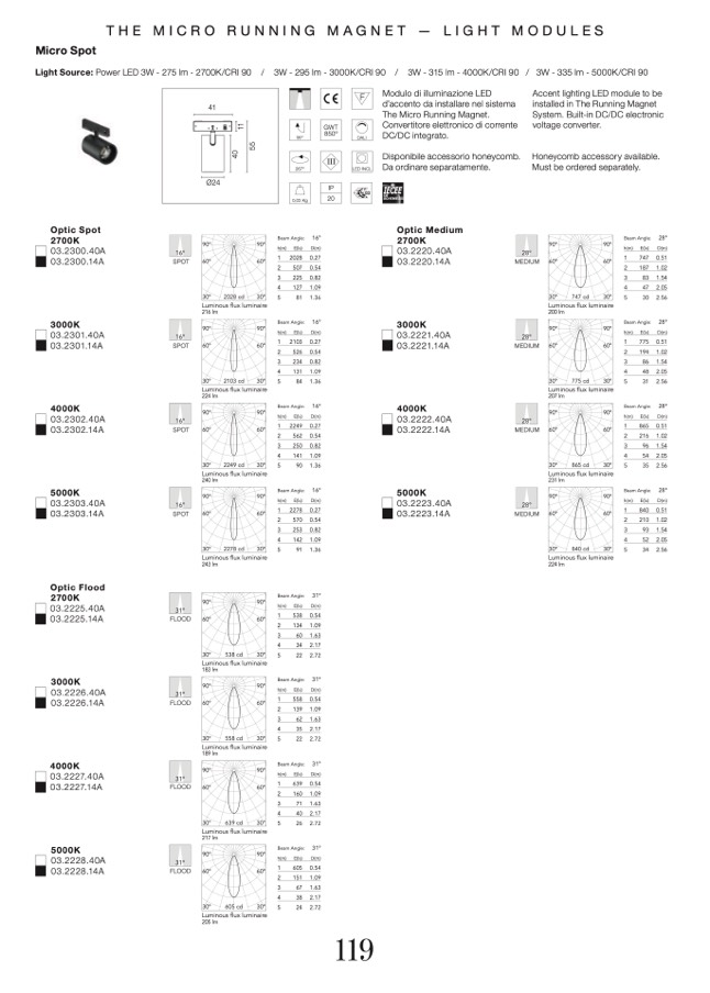 3W - 295 lm - 3000K/CRI 90 / 3W - 315 lm - 4000K/CRI 90