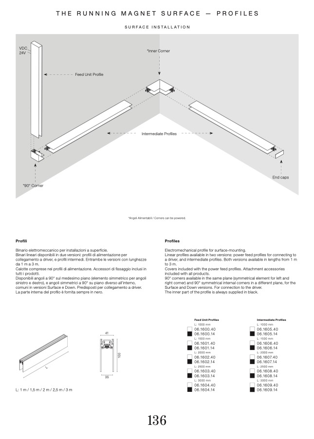 Linear profiles available in two versions: power feed profiles for connecting to