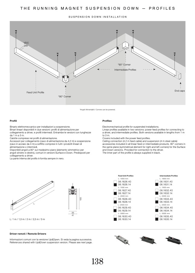 a driver, and intermediate profiles. Both versions available in lengths from 1 m