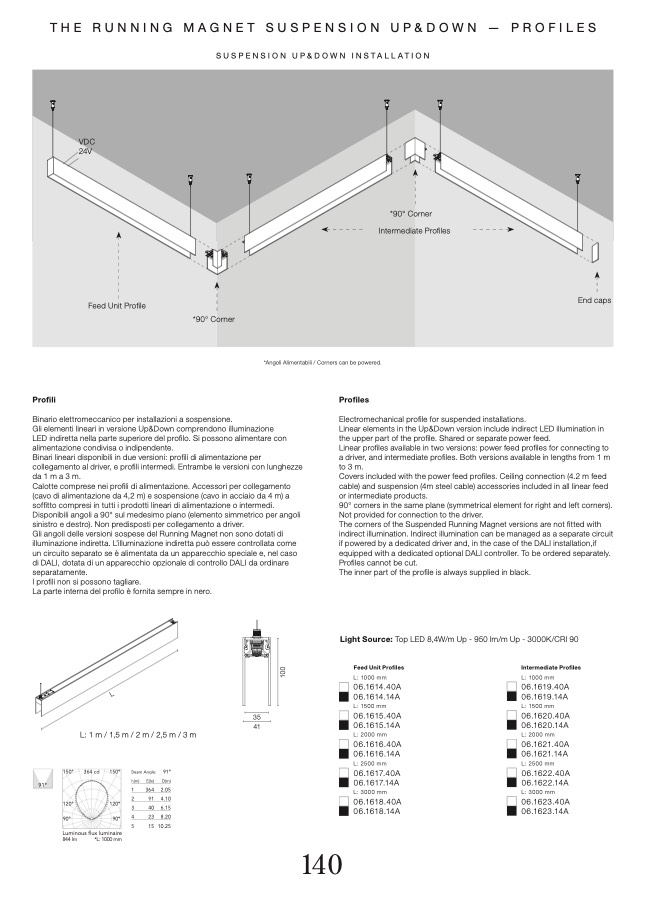 Light Source: Top LED 8,4W/m Up - 950 lm/m Up - 3000K/CRI 90