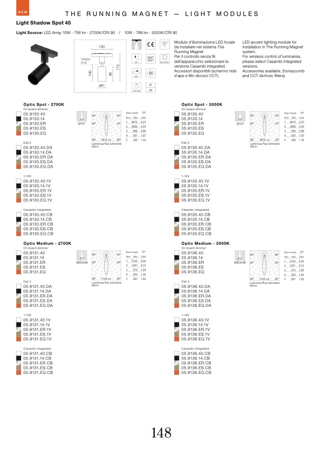Light Source: LED Array 10W - 756 lm - 2700K/CRI 90