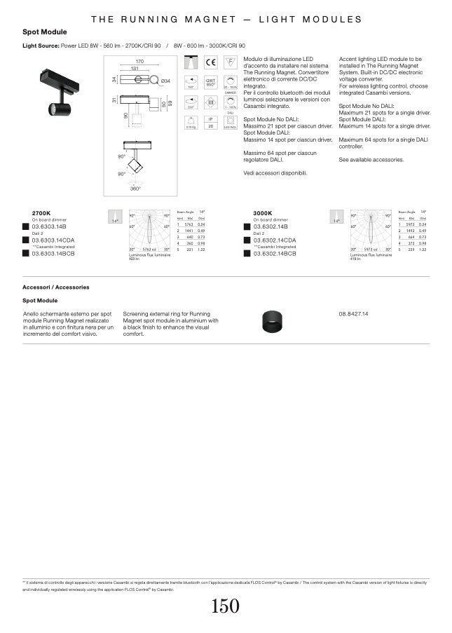 ** Il sistema di controllo degli apparecchi i versione Casambi si regola direttamente tramite bluetooth con l'applicazione dedicata FLOS Control