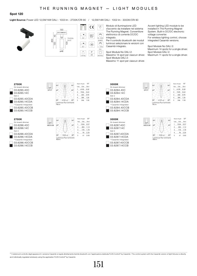 ** Il sistema di controllo degli apparecchi i versione Casambi si regola direttamente tramite bluetooth con l'applicazione dedicata FLOS Control