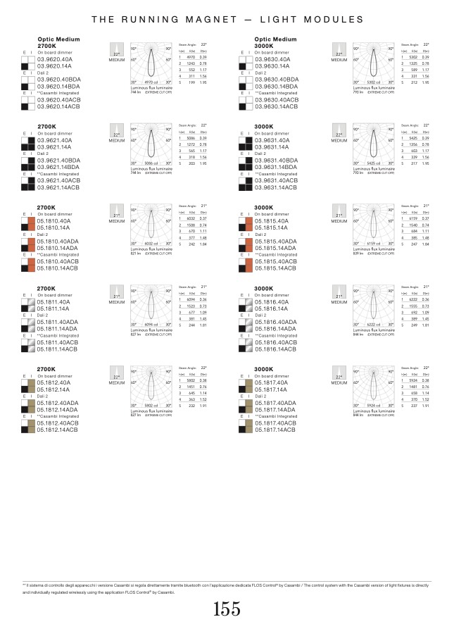 ** Il sistema di controllo degli apparecchi i versione Casambi si regola direttamente tramite bluetooth con l'applicazione dedicata FLOS Control