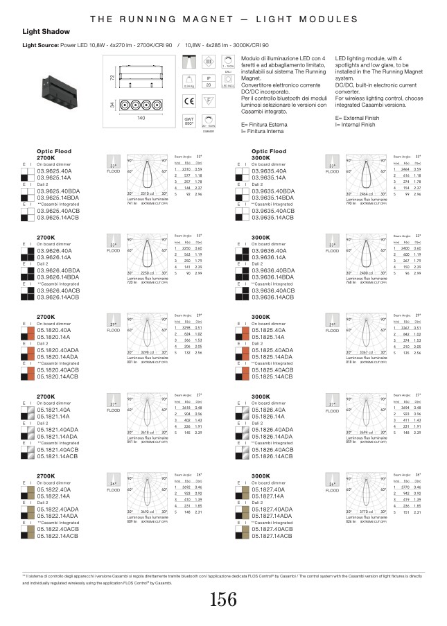 ** Il sistema di controllo degli apparecchi i versione Casambi si regola direttamente tramite bluetooth con l'applicazione dedicata FLOS Control