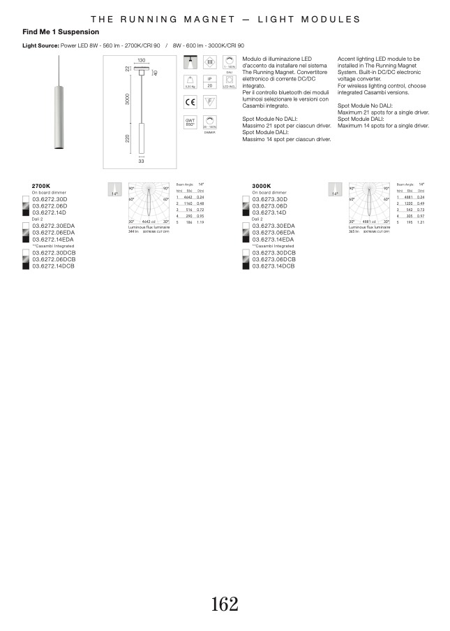 Light Source: Power LED 8W - 560 lm - 2700K/CRI 90