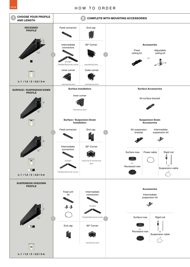 L: 1 / 1,5 / 2 / 2,5 / 3 m