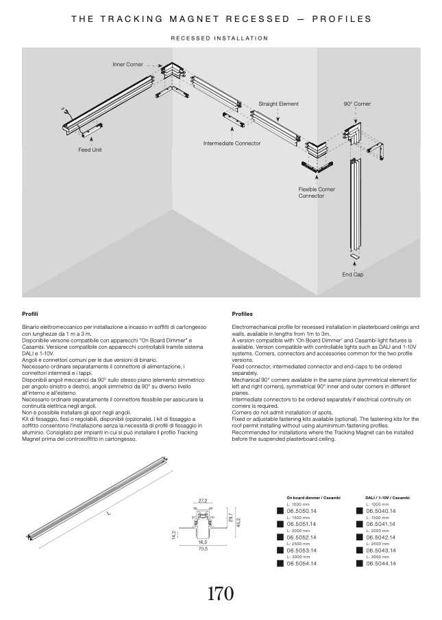 Binario elettromeccanico per installazione a incasso in soffitti di cartongesso