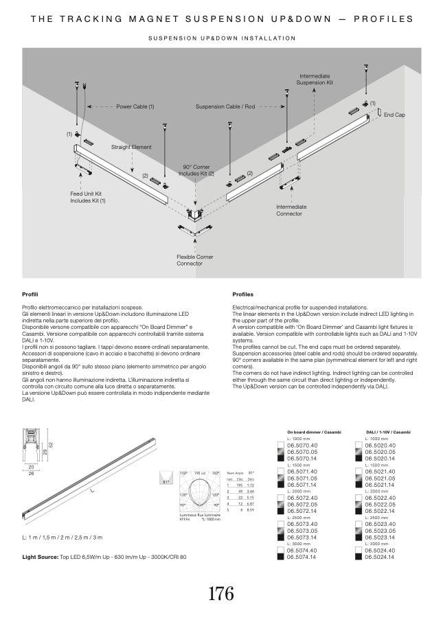 Light Source: Top LED 6,5W/m Up - 630 lm/m Up - 3000K/CRI 80