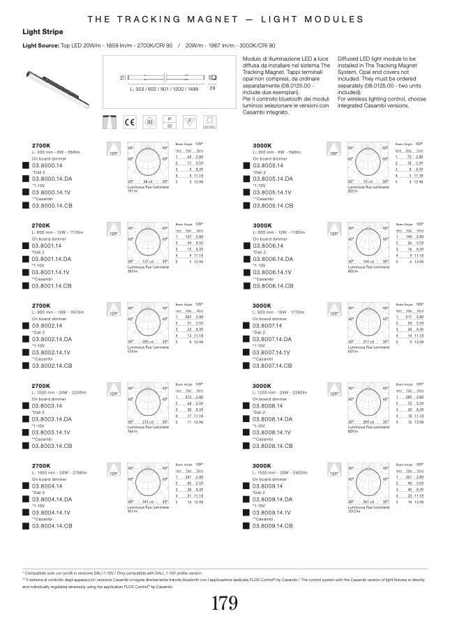 ** Il sistema di controllo degli apparecchi i versione Casambi si regola direttamente tramite bluetooth con l'applicazione dedicata FLOS Control